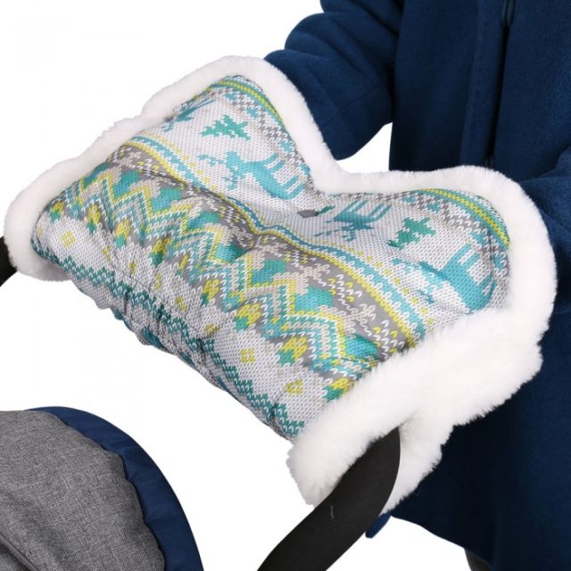 Для Санок Муфта для рук НИКА (ткань ПВХ с пропиткой, искусственный мех) ВЯЗАНЫЙ БИРЮЗА