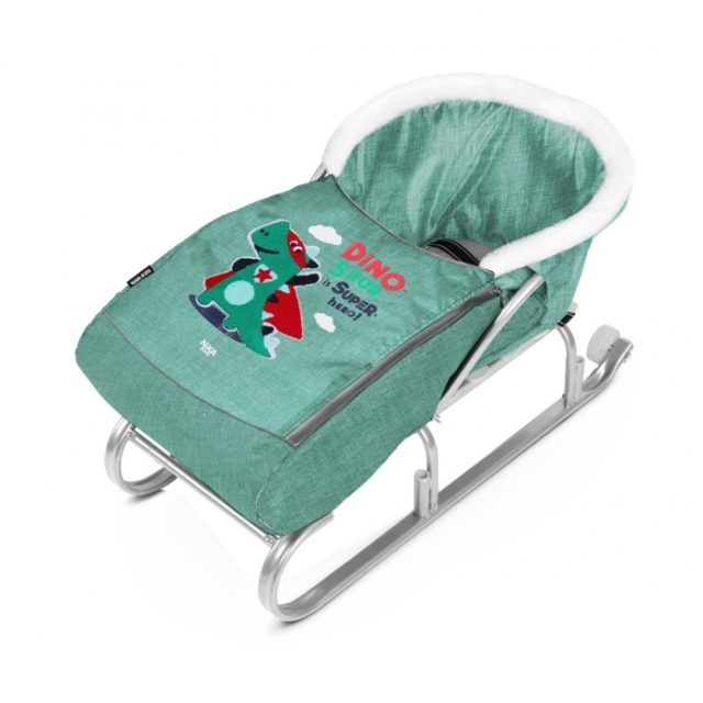 Матрасик для санок с попоной НИКА СС3-2/З УНИВЕРСАЛ мех. отделка молния (10 шт. упак.) ДИНОЗАВР ЗЕЛ