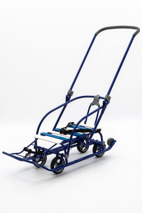 Санки детские NIKKI 3/С2 (ВЫДВИЖНЫЕ КОЛЕСА) (СКЛАДНАЯ СПИНКА, СКЛАДНАЯ РУЧКА) СИНИЙ