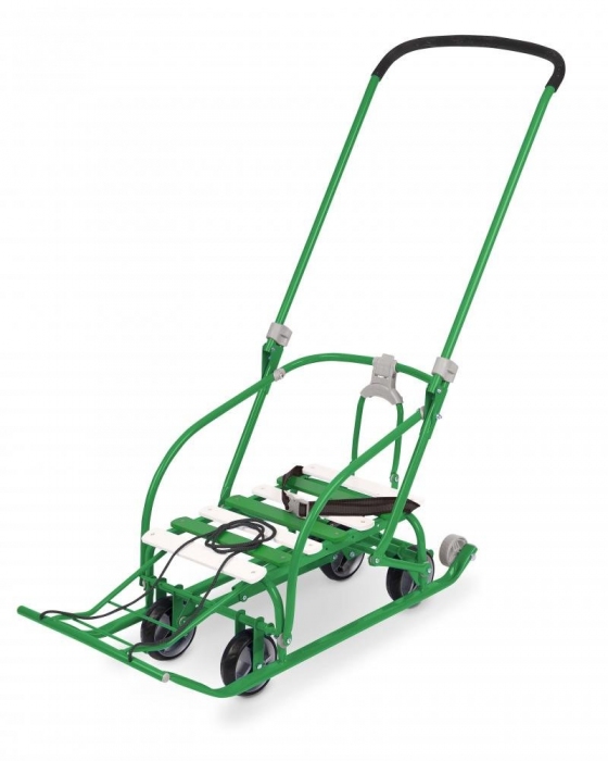 Санки детские NIKKI 3/32 (ВЫДВИЖНЫЕ КОЛЕСА) (СКЛАДНАЯ СПИНКА, СКЛАДНАЯ РУЧКА) ЗЕЛЕНЫЙ