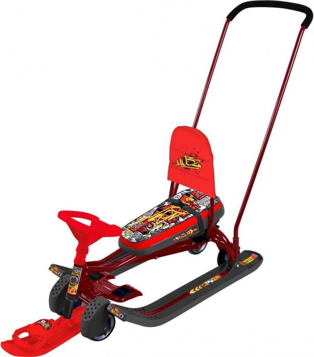 Снегокат Тимка СПОРТ 6 (ГРАФФИТИ КРАСНЫЙ NEW) рама красная ВЫДВИЖНЫЕ КОЛЕСА СО СПИНКОЙ (упак. 1 шт.)