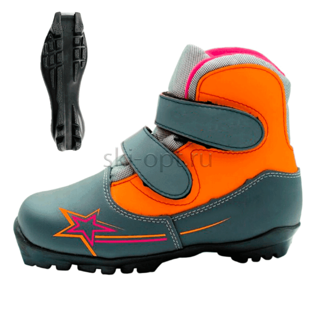 Верх лыжного ботинка выполнен из прочных синтетических материалов, выдерживающих морозы до -35 °C. В ботинке предусмотрены застегивающие липучки для быстрого обувания и снятия. Подошва выполнена из термоэластопластов с анатомическим задником. Язык – клапан из водоотталкивающих материалов обеспечивает защиту от снега и влаги. Внутренние материалы ботинка обеспечивают сохранение тепла и выведение лишней влаги.