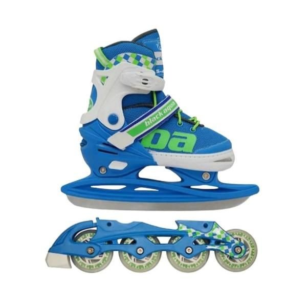 - Универсальность использования: Легкая замена лезвий на роликовую платформу позволяет использовать коньки в любое время года.
