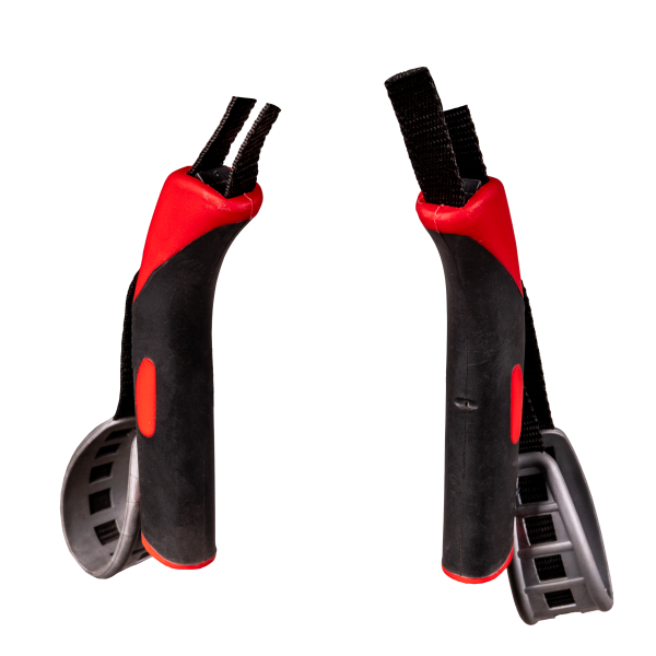- Яркий дизайн: Черно-красная расцветка делает ручку заметной на снегу.